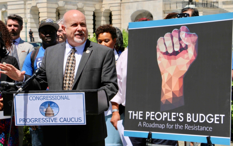 Representative Mark Pocan of Wisconsin at a press conference for the “People’s Budget” on Capitol Hill on Tuesday, May 2, 2017.  Representative Mark Pocan of Wisconsin at a press conference for the “People’s Budget” on Capitol Hill on Tuesday, May 2, 2017. (Photo via Congressional Progressive Caucus)